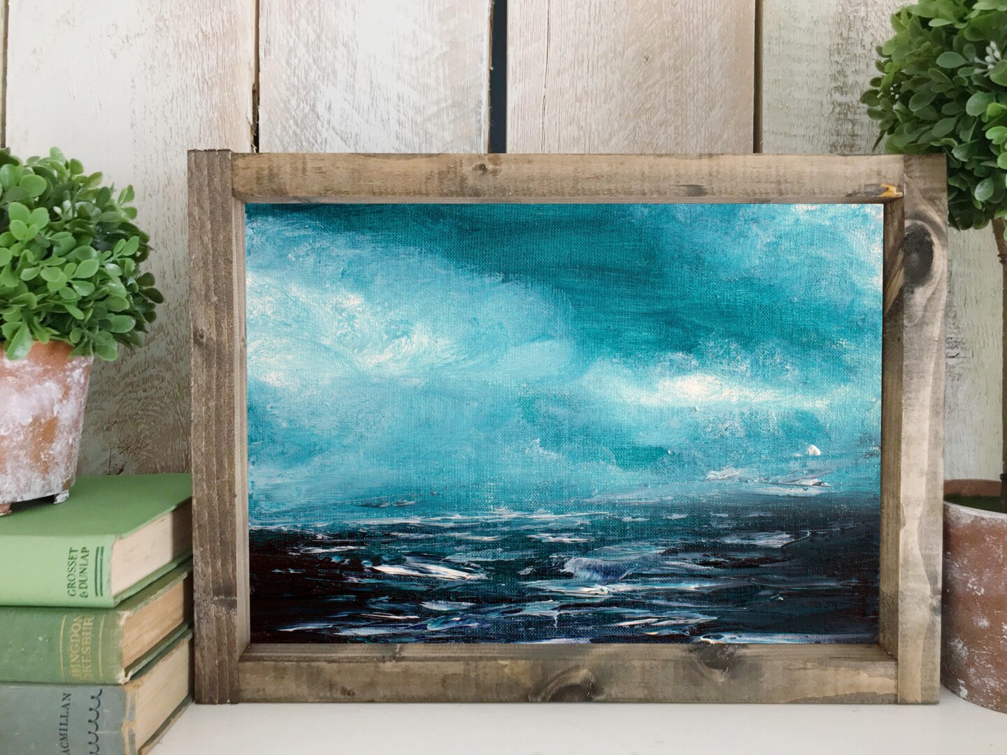 This piece is perfect for the collector of miniature art, the lover of moody seascapes, or anyone seeking a calming yet dynamic focal point for a small space. It appeals to those who value tactile art, rich color depth, and the mysterious power of the ocean.