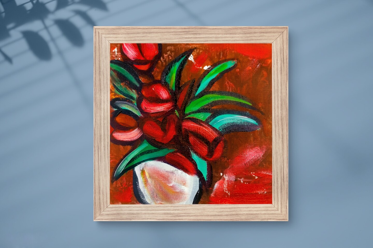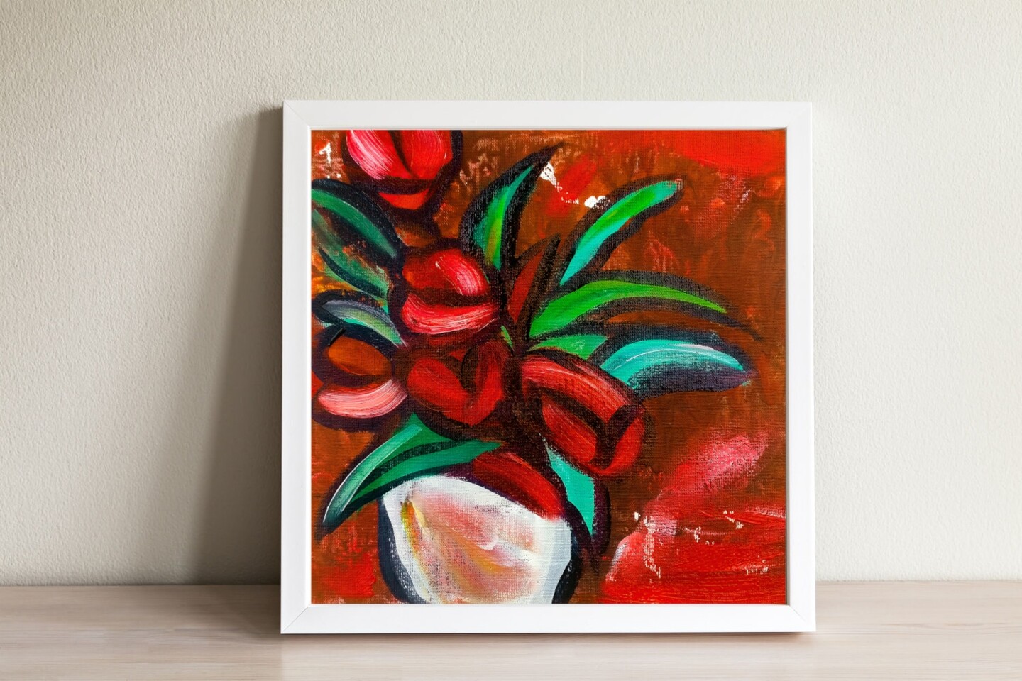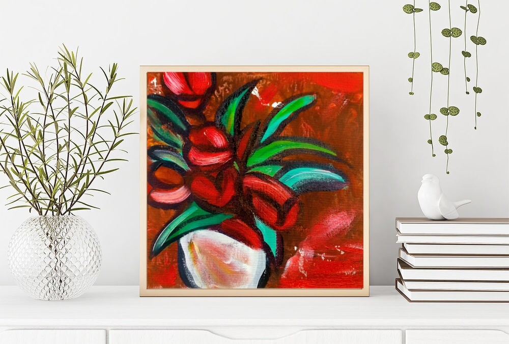 Though small in format, it resonates with strength and modernity, perfect as a standalone accent or part of a curated collection of floral abstractions.