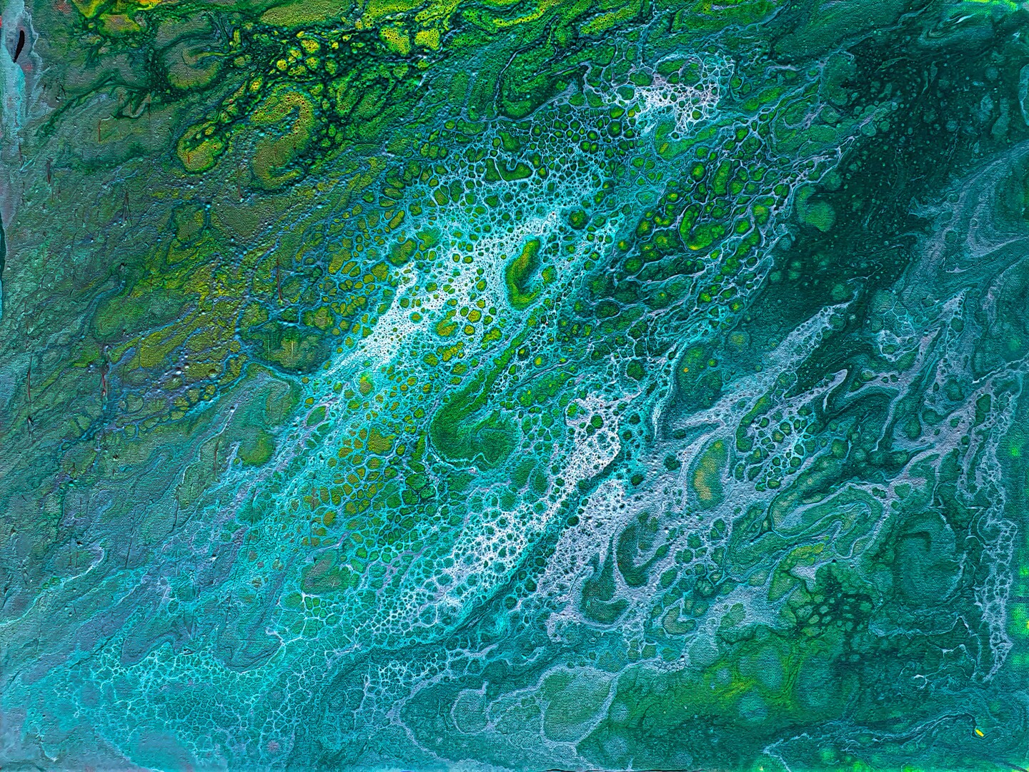 Emerald Flow is a rich, textural abstract acrylic painting created using fluid art techniques on canvas. The vibrant green tones β ranging from emerald to jade β create a dynamic sense of movement, like the flow of water through a mossy stream πΏ. The cellular texture and subtle layering invite the viewer in for a closer look, making it perfect for nature lovers or those who enjoy bold yet soothing visuals.