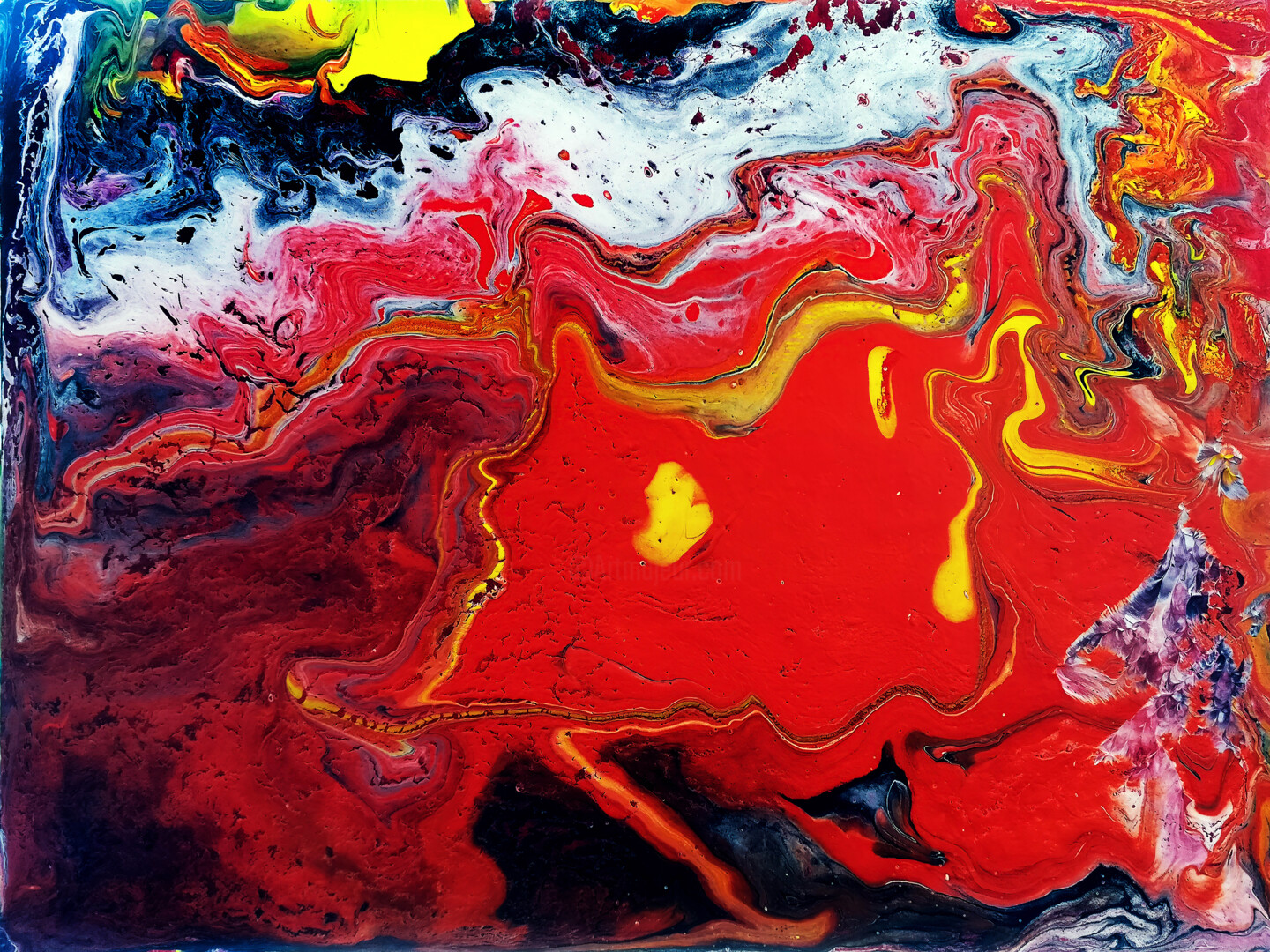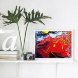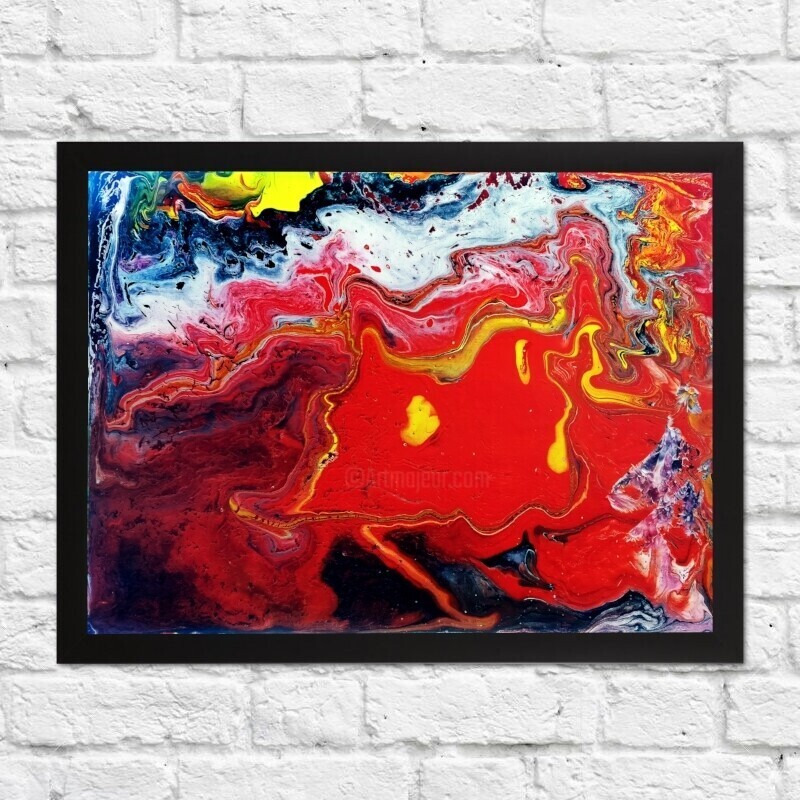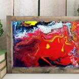 Molten Currents is a bold and dynamic original acrylic painting on canvas, created using fluid art techniques. With intense reds, vivid yellows, inky blacks, and glowing highlights, it evokes the sensation of raw, molten energy in motion β like fire flowing through color.