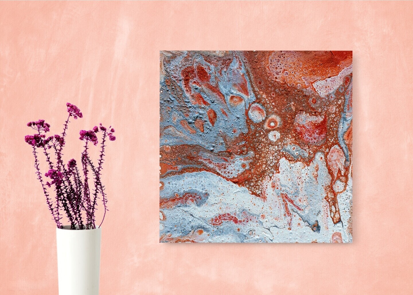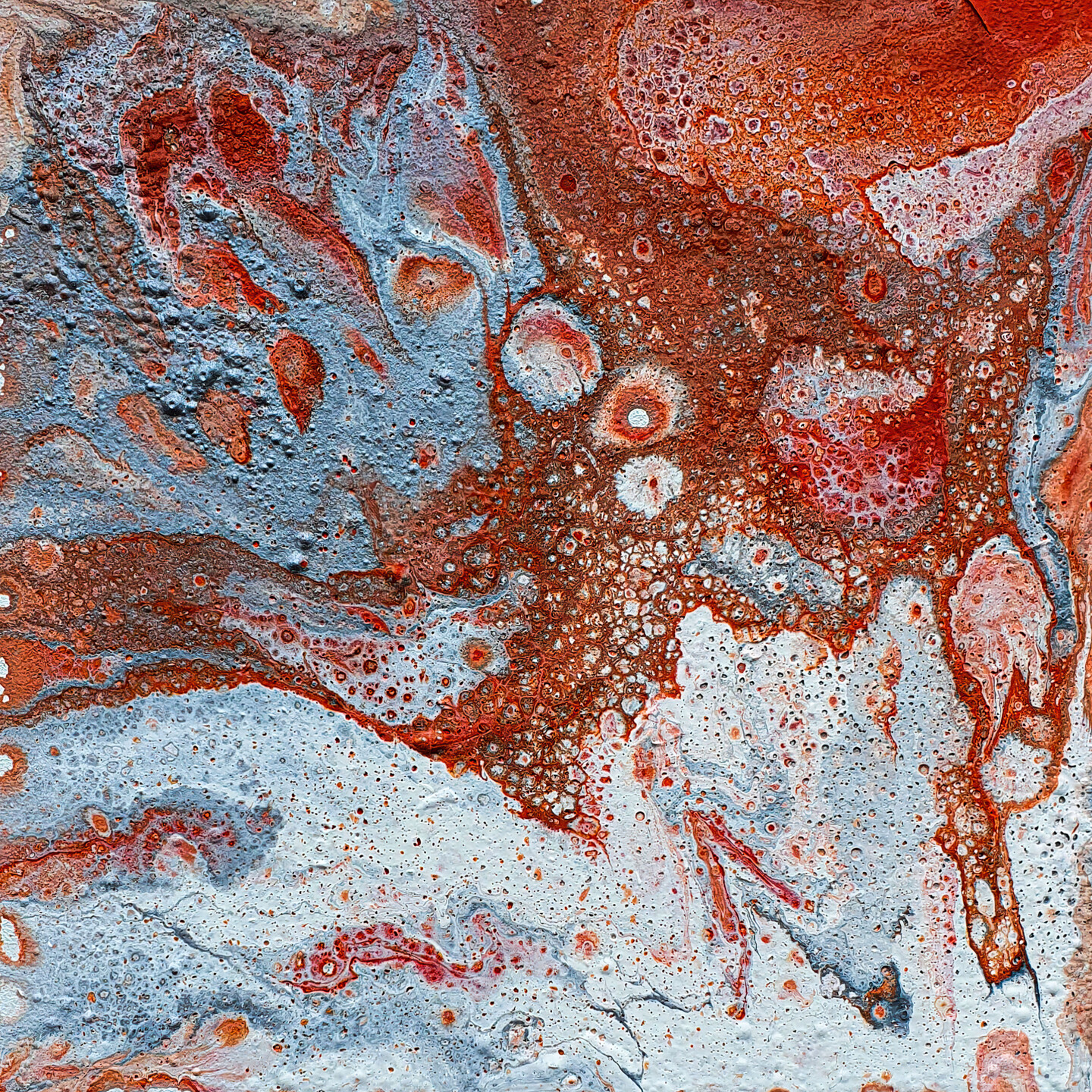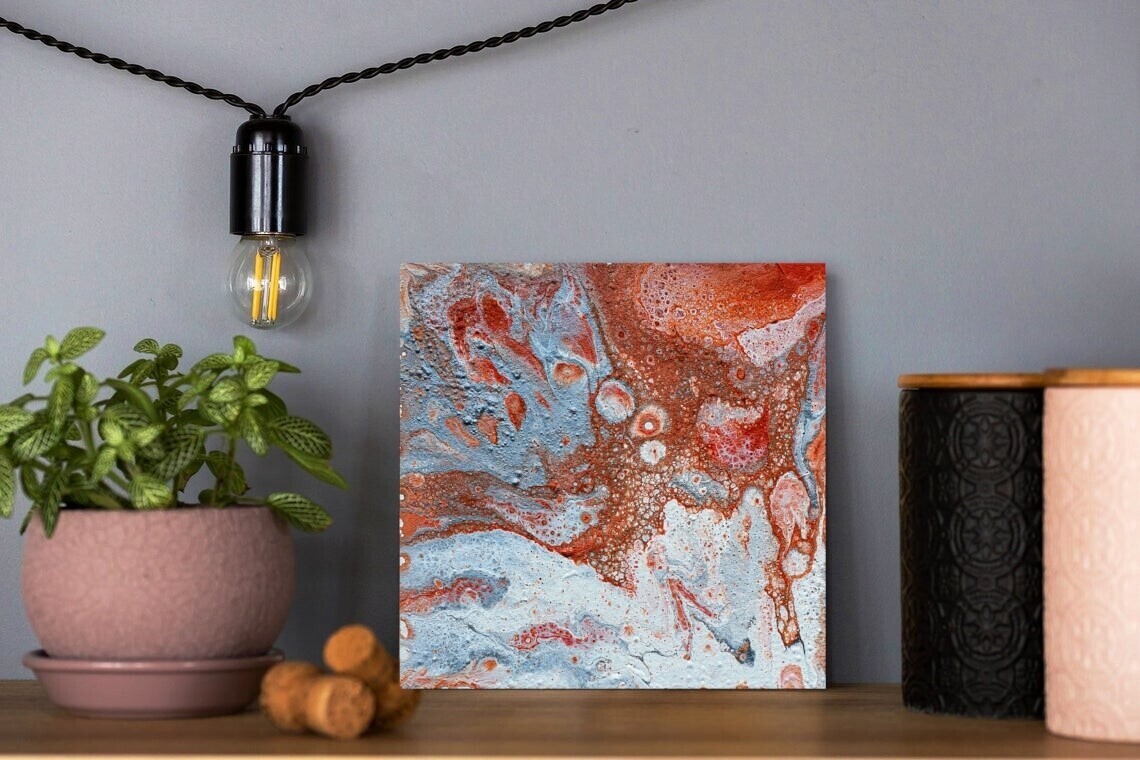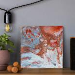 Compact yet powerful, this 15x15 cm original painting is ideal for small spaces, office desks, or gallery walls. Its bold colors and organic shapes evoke the raw beauty of nature and metal oxidation.