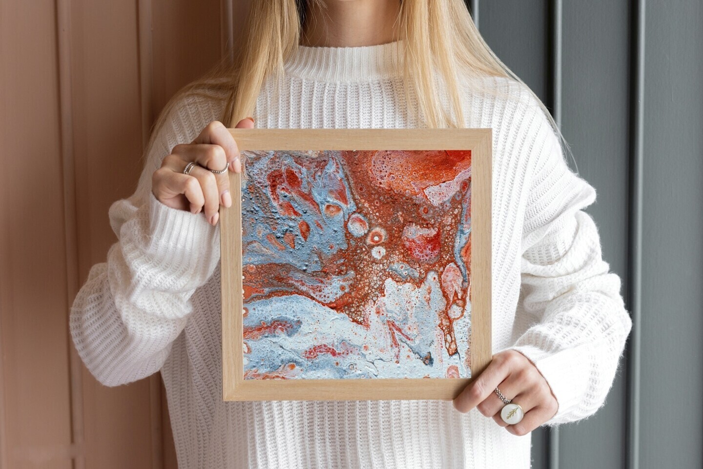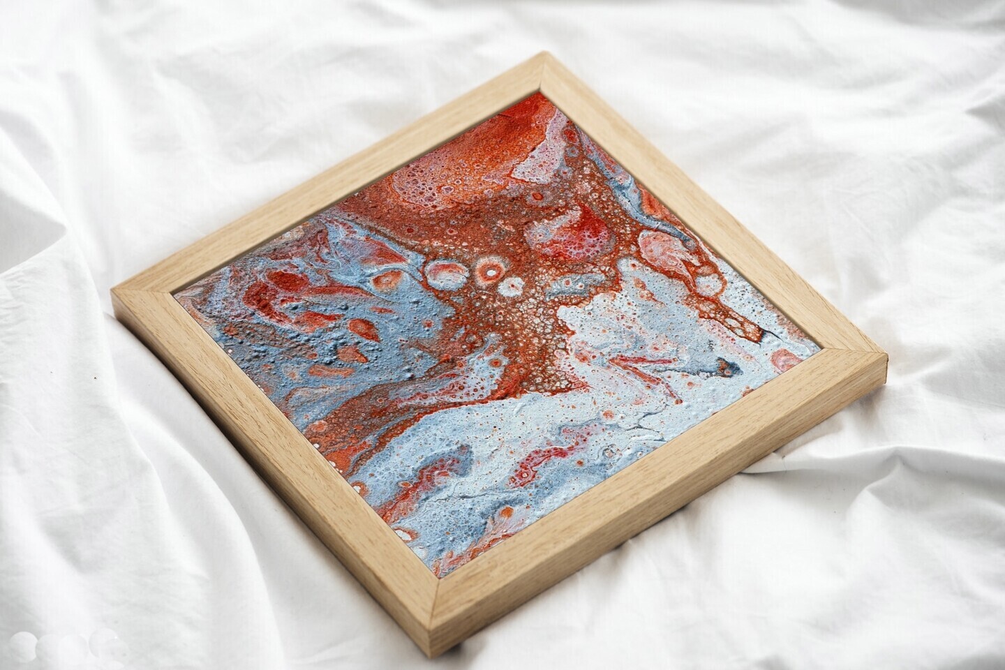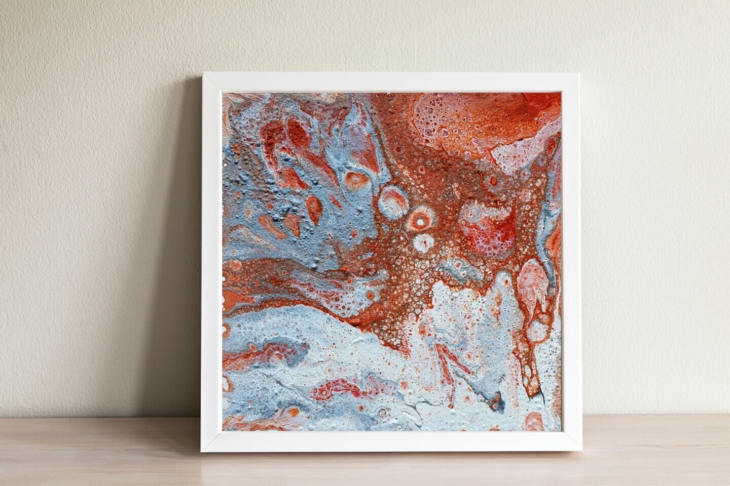 Compact yet powerful, this 15x15 cm original painting is ideal for small spaces, office desks, or gallery walls. Its bold colors and organic shapes evoke the raw beauty of nature and metal oxidation.